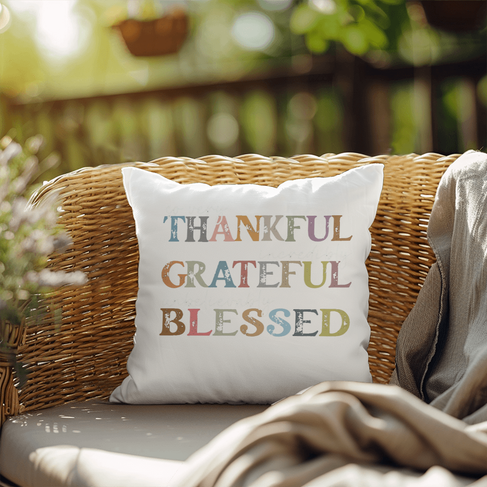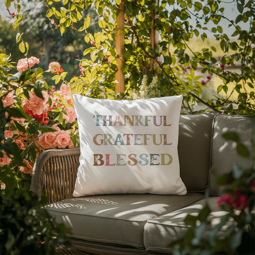 Thankful Grateful Blessed | Outdoor Pillow